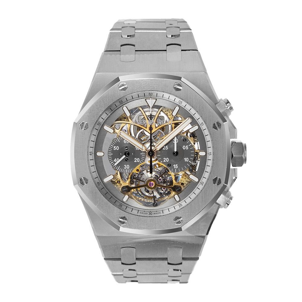 The Audemars Piguet Royal Oak Offshore 26347TI is a striking demonstration of the brands cutting-edge craftsmanship and bold design philosophy. Limited to just 25 pieces worldwide, this exclusive timepiece boasts a 44mm titanium case that delivers both exceptional strength and a remarkably lightweight feel on the wrist. At its heart lies a captivating openworked dial that exposes the intricate mechanics of the chronograph movement, highlighting the architectural beauty and complexity within. The signature Royal Oak Offshore design is elevated by its angular bezel and integrated bracelet, offering a modern, sporty aesthetic balanced by refined watchmaking tradition. This limited edition is not just a watchits a rare collectors piece that embodies power, precision, and the pinnacle of horological engineering.
