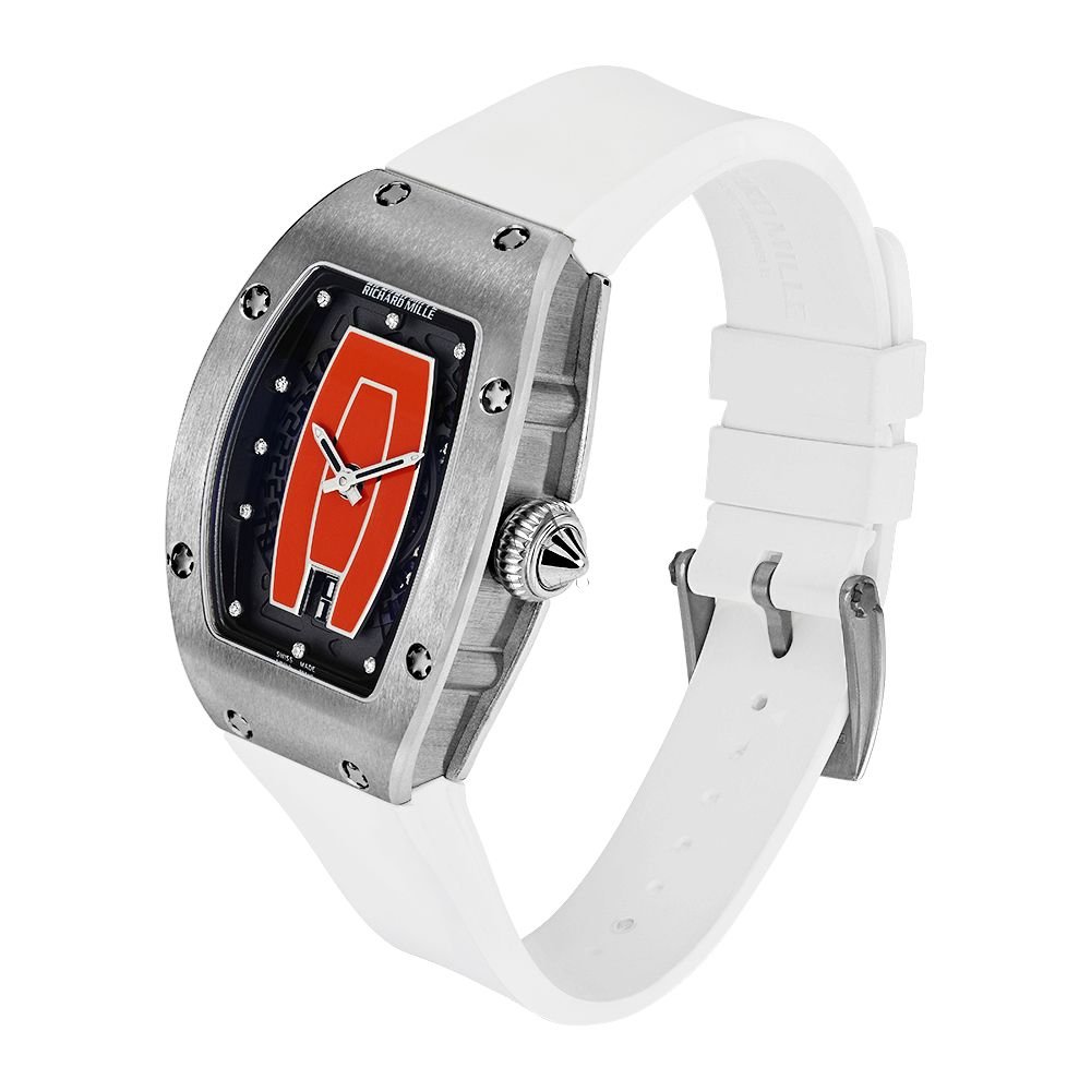 The Richard Mille RM 007 in 18K white gold epitomizes luxury and innovation in a truly exceptional timepiece. With its 31mm case size, this watch combines a sleek, feminine design with cutting-edge craftsmanship. The openworked skeleton dial showcases a mesmerizing array of diamonds, adding a touch of brilliance and sophistication. Powered by the RM 007 caliber, the movement provides precision and reliability, all within an ultra-lightweight structure. This timepiece is not only a statement of elegance but also a testament to the mastery of Richard Milles engineering, delivering unmatched comfort and style for the discerning collector.