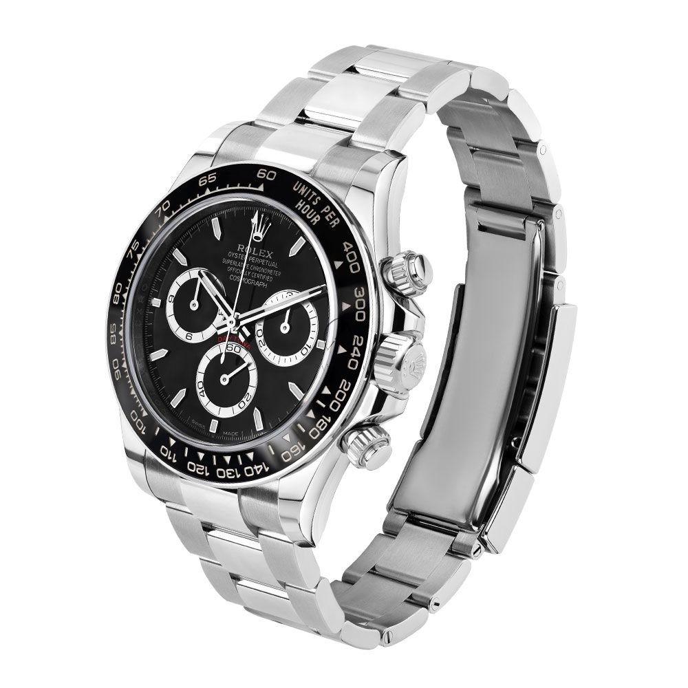 The Rolex Daytona 126500LN is the epitome of luxury and precision, combining exceptional performance with timeless design. Encased in a 40mm stainless steel case, this iconic chronograph features a striking black dial with contrasting white sub-dials, offering optimal readability and a classic aesthetic. The high-performance Cerachrom bezel, with its tachymetric scale, allows for precise speed measurements, further elevating the watchs functionality for motorsport enthusiasts. Powered by the Rolex Caliber 4130, the Daytona offers unparalleled accuracy and reliability. The stainless steel Oyster bracelet provides a comfortable and secure fit, ensuring durability and sophistication. With a water resistance of 100 meters, this Daytona is not only a stylish timepiece but a practical one as well, making it a must-have for collectors and watch aficionados.